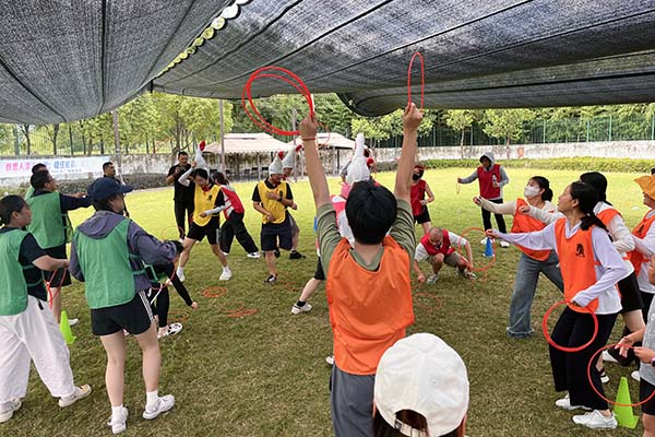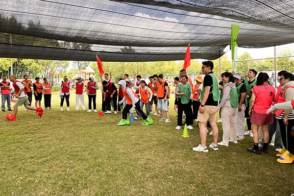 上午,团建活动在轻松愉悦的氛围中拉开帷幕。现场设置了多线拔河套圈、套大鹅、大脚接力等丰富多彩的趣味项目。多向拔河,各队队员齐心协力、奋勇拼搏,口号声、加油声此起彼伏,充分展现了团队的凝聚力和战斗力;套“大鹅”,大家全神贯注,瞄准目标,每一次成功套中都引来阵阵欢呼;大脚接力则考验着队员之间的默契与协作,大家你追我赶,现场气氛热烈非凡。这些活动不仅让同事们在紧张的工作之余得到了放松,更增进了彼此之间的了解与信任,为今后的工作协作奠定了良好的基础。