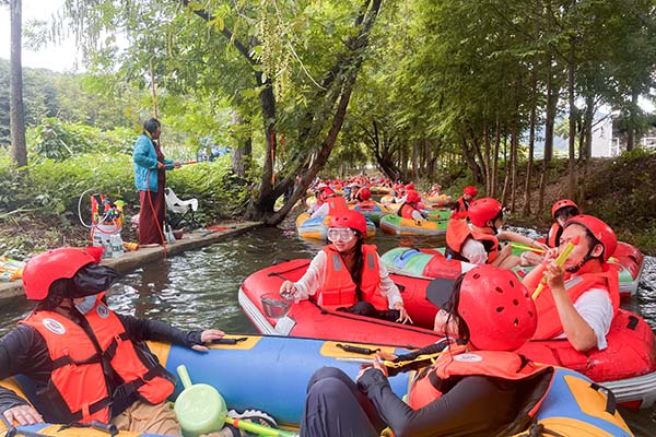 中午,大家围坐在一起享用了美味的便餐,在轻松愉快的氛围中交流着上午活动的感受。短暂的休息后,下午的漂流活动正式开启,将此次团建活动推向了高潮。